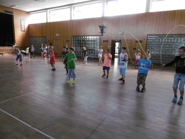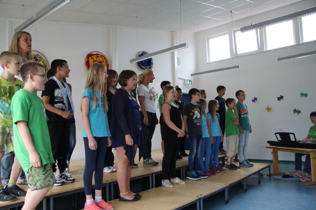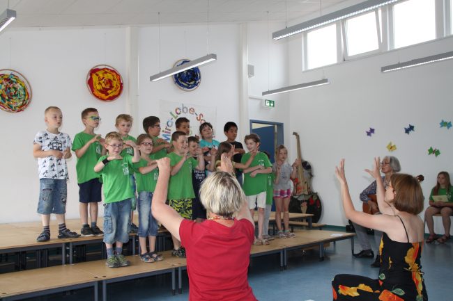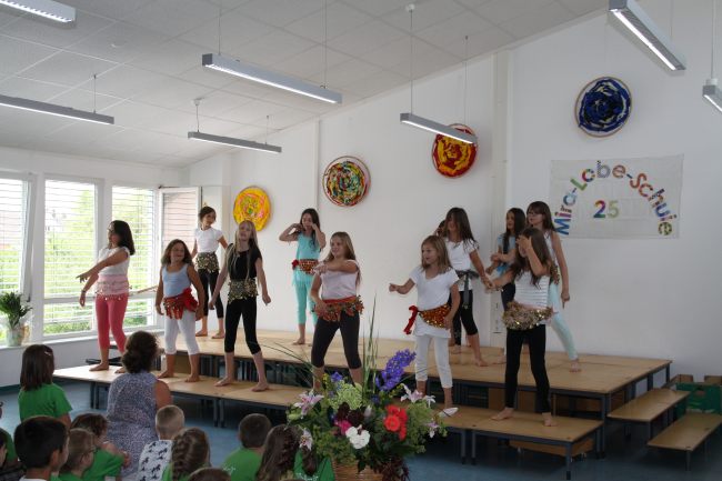 „Und weiter geht es mit den Klassen 3a und 4a mit der Britta-Polka“