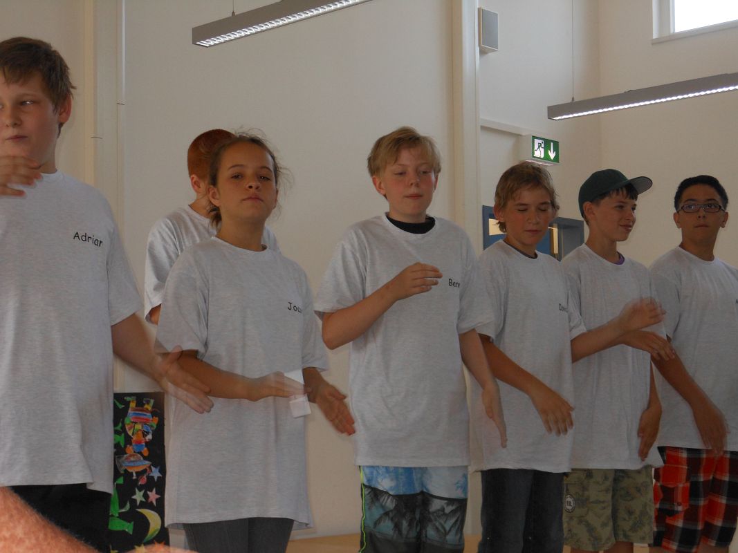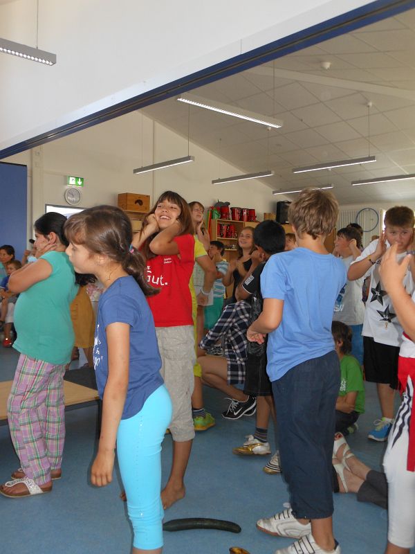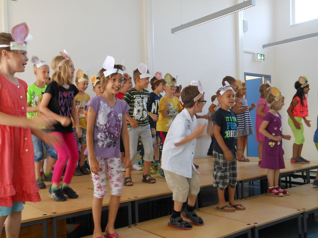 Beim anschließenden Tanz der ersten Klassen „Ich fass mir an die Nase“ blieb kein Schüler mehr auf seinem Platz sitzen. Alle machten mit.