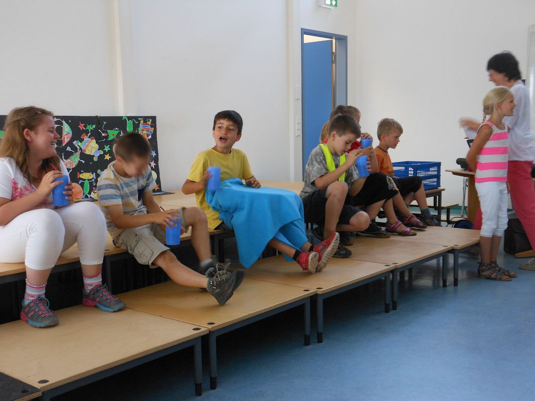 Dann sind alle schon gespannt, mit welchen Kleinteilen das Glas im nächsten Monat befüllt wird. (Tiger, April 2014) Vom 29.04.2014 auf den 30.04.2014 hat die Tigerklasse im Rahmen des Welttag des Buches in der Mira-Lobe-Schule übernachtet. Hier ein paar Eindrücke der Kinder: Unsere Betten Pizza backen Abends in der Bücherei Lesen im Schlafsack (Aktuelles, Mai 2014) Am 15. Mai 2014 traf sich das Kollegium der Mira-Lobe-Schule zu einer Pädagogischen Konferenz, um an der Erstellung des Konzepts „Soziales Lernen und Gewaltprävention“ weiter zu arbeiten. Zunächst beschrieb das Kollegium in einer der vorangegangenen Gesamtkonferenzen ein Leitziel. Unser Leitziel ist: „Unser Schulalltag kann nur gelingen, wenn sich in unserer Schule alle sicher und geborgen fühlen. Wir wollen, dass an unserer Schule gerne gelernt und gelehrt wird. Nur in einem angstfreien Klima, verbunden mit gegenseitiger Akzeptanz und dem Wohlbefinden jedes Einzelnen, kann Lernen erfolgreich sein.“ Um unser Leitziel zu erreichen, bedarf es einiger Teilziele. So wurden auch in vorangegangenen Gesamtkonferenzen zu den Bereichen „Kommunikation und Interaktion“, „Identifikation und Zugehörigkeit“, „soziale Wahrnehmung“ und „Entwicklung und Entfaltung der Persönlichkeit“ Teilziele (Kompetenzen) ausgearbeitet. |
