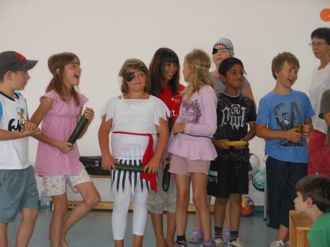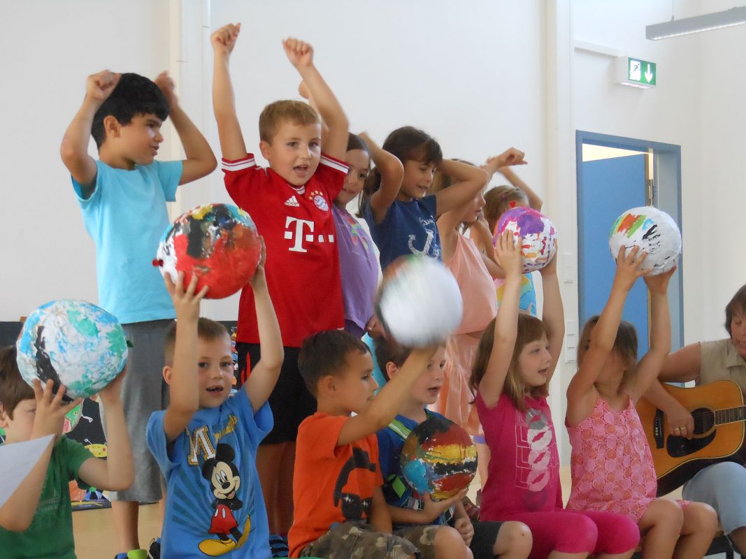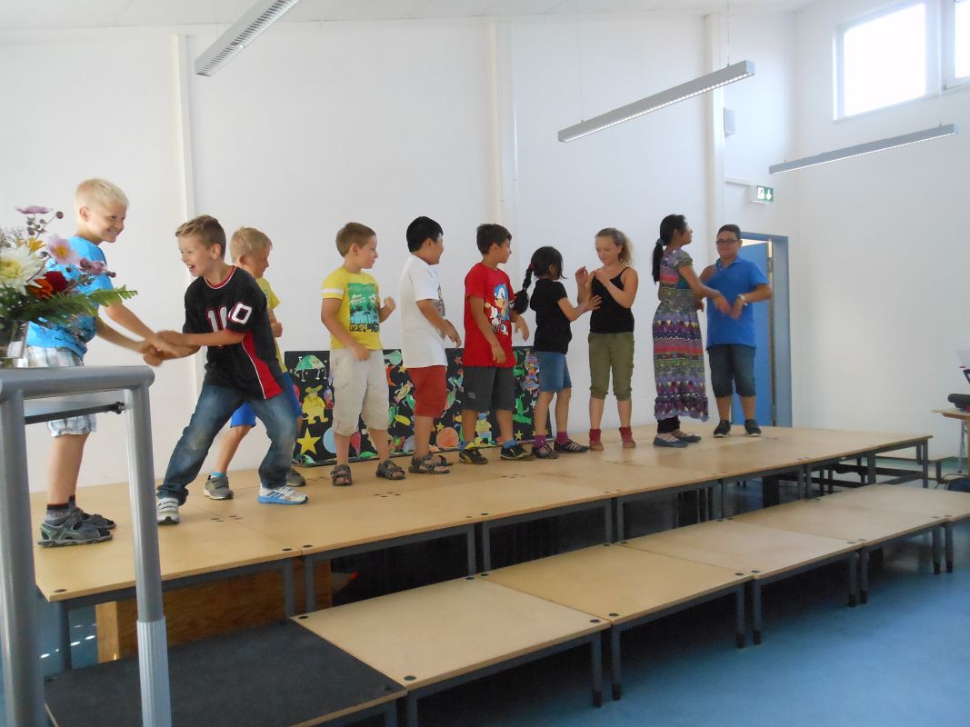 (Aktuelles, Juli 2014) Wie jedes Jahr zum Jahresabschluss gab es in der Mira-Lobe-Schule eine Abschiedsfeier. Am 24. Juli 2014 war es wieder soweit: Alle Schülerinnen, Schüler und Lehrerinnen und einige Eltern trafen sich um 10.10 Uhr in der Aula. Los ging es mit dem Lied „Die Weltraummaus“, welches die ersten Klassen darboten. Die Vorklassen hatten passend zum Fußball-WM-Jahr den Fußballsong „Tor, Tor, Tor“ mitgebracht.