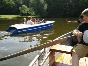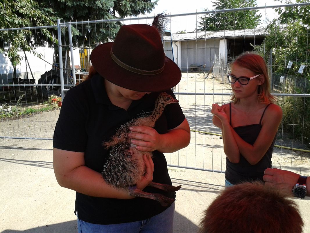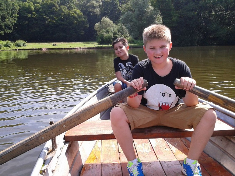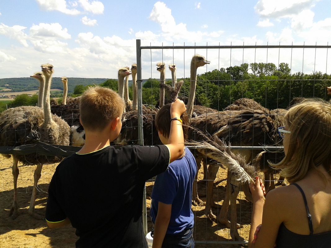 (Tiger, Juli 2014) Im neuen Schuljahr wird es die Tigerklasse leider nicht mehr geben! Zum Abschied haben wir zwei sehr schöne Ausflüge gemacht: Wir fahren Boot. Wir waren am Oberwaldhaus. Da haben wir 2 Boote gemietet. Die Jungen fuhren mit dem Ruderboot und die Mädchen fuhren mit dem Tretboot. Wir haben uns zugewunken. Das war schön! Auf der Straußenfarm in SchaafheimAn einem sonnigen Tag besuchten wir die Straußenfarm. Frau Roth hat uns alles gezeigt, und geduldig unsere vielen Fragen beantwortet. Wir haben wir „Siebenstein“, den Straußen-Mann gesehen. Er hat 2 Straußen-Frauen. Sie haben zusammen 14 Eier ausgebrütet. Das Nest ist sehr groß. Es besteht aus Sand. Wir durften sogar ein Straußenküken anfassen. Dann durften alle eine Kette basteln, aus der Schale von einem Straußen-Ei, aus Perlen und Lederbändchen. Auf dem Foto sind die Kinder mit geschmückten Ketten. Nach der Führung und dem Ketten-basteln zeigte uns Frau Roth eine Plastikwanne, in der Sand war und 5 Straußen-Eier. Wir durften uns auf die Straußeneier draufstellen. Kein Ei ist dabei kaputt gegangen! Wir hatten viel Spaß! Herzlichen Dank an Frau Breiter für den schönen Tag!