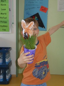 Die Vorklassen widmeten den Tag der „Raupe Nimmersatt“ Sie bastelten fleißig kleine Raupen und backten Schmetterlinge. Ein Plakat mit einer Riesenraupe wurde in einer Gemeinschaftsarbeit erschaffen.