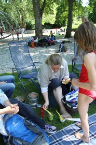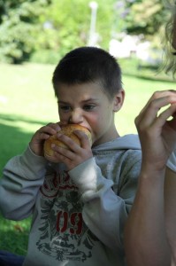 Doch das Beste:Mitten auf der Spielplatzwiese eröffnete Frau Lüdicke kurzerhand einen HOTDOG-STAND.