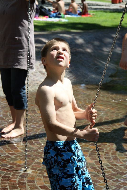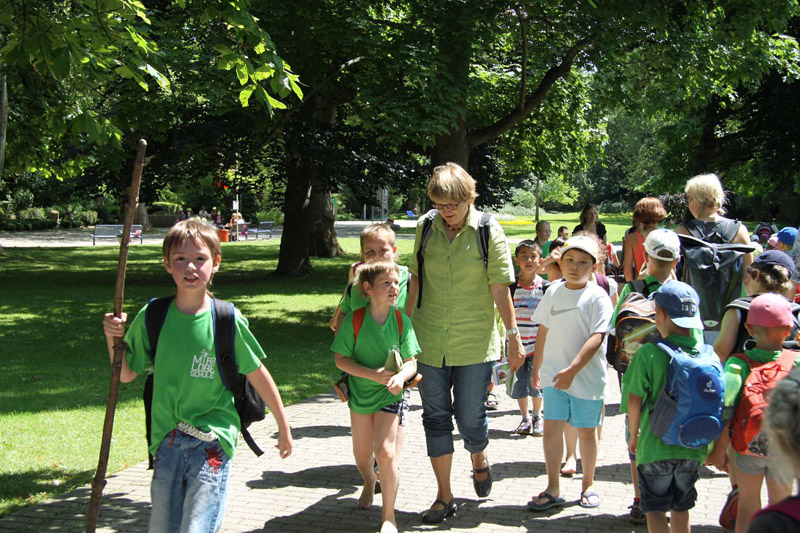 Vielen Dank!(Aktuelles, Juli 2013) Unsere Sprachheilschule wird in diesem Schuljahr 20 Jahre alt.Zur Feier dieses “runden Geburtstages” hieß es am 1. Juli 2013 für alle Schülerinnen und Schüler und Lehrerinnen der Mira-Lobe-Schule von Vorklasse bis 6. Klasse: Ab nach Mannheim in den Luisenpark!In Eppertshausen an der Mira-Lobe-Schule warteten die Busfahrer auf alle Mitfahrenden. Schnell waren die Busse gefüllt und los ging die Fahrt. Gegen 10.00 Uhr erreichten wir dann den Parkplatz am Luisenpark Mannheim. … ein paar Minuten warten … … und rein! Schon standen wir in dem wunderschönen und weitläufigen Luisenpark. Wie vom Kollegium besprochen, trafen sich alle Klassen der Mira-Lobe-Schule zunächst auf der großen Wiese direkt an den groß angelegten Blumenbeeten (im Parkplan Strahlenbeete genannt). Frau Meier begrüßte alle Schülerinnen und Schüler und Kolleginnen zu diesem Ausflug, den sich die Mira-Lobe-Schule selbst zum Geschenk anlässlich des Jubiläums gemacht hatte. „Wir wollten einfach mal etwas machen, was den Schülern Spaß macht!“ Frau Greiner stimmte mit ihrem Akkordeon unser Schullied an … Und so wurde kräftig gesungen. Es gab so einiges zu entdecken: … im Parksee schwammen Pelikane… … und Karpfen. Am Ufer sonnten sich die Schildkröten. Es gab aber auch Bauernhoftiere, Vögel, Pinguine, Krokodile und andere Tiere zu entdecken. Unterschiedliche Spielplätze luden zum Verweilen ein. WASSERSPIELPLATZ